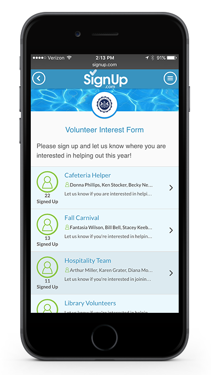 SignUp has taken the headache out of scheduling with free volunteer interest SignUps that allow organizers to compile volunteer information quickly online, in one place, with free easy reporting features and 24/7 accessibility! Volunteers can view their interest sheet at any time from any device – with a few clicks and taps, they've shared their contact information and where they want to pitch in.